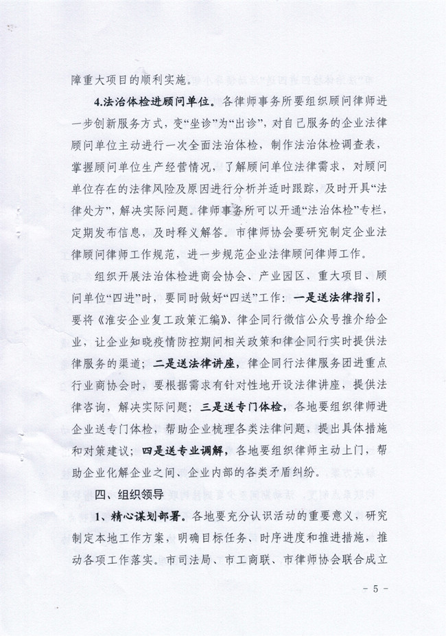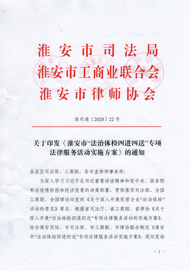 关于印发《淮安市“法治体检四进四送”专项法律服务活动实施方案》的通知