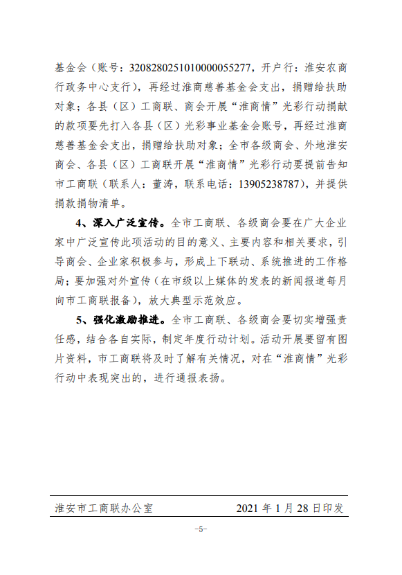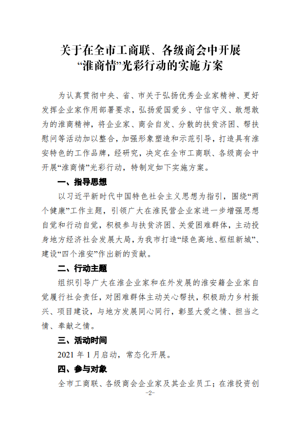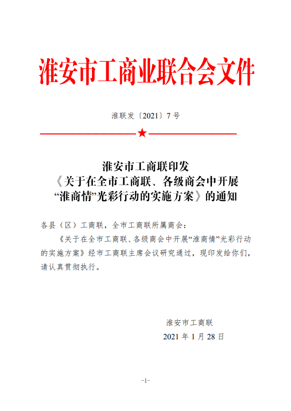 淮安市工商联印发《关于在全市工商联、各级商会中开展“淮商情”光彩行动实施方案》的通知
