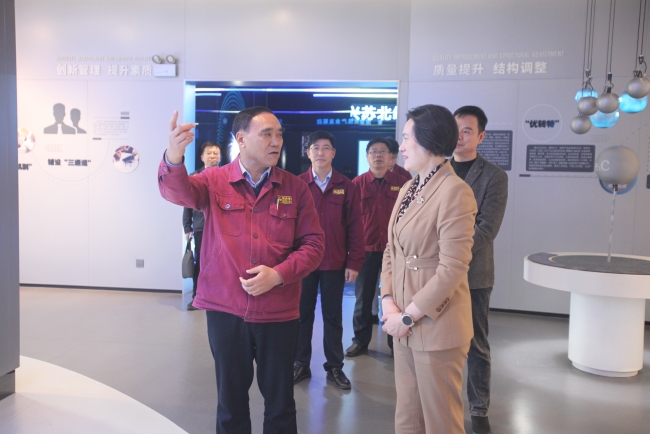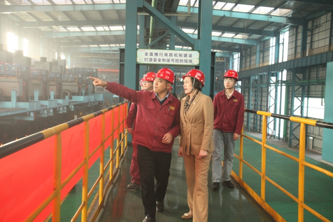 叶蓓一行参观了企业展示厅,通过图文展板、产品实物和数字化演示,听取公司发展历程、产业布局、核心产品及技术创新成果介绍;走进轧钢厂五轧车间,实地了解企业调度运营、自动化管理、智能化生产等情况,对企业深入推进降本增效、大力优化产品结构、加快转型升级给予充分肯定。