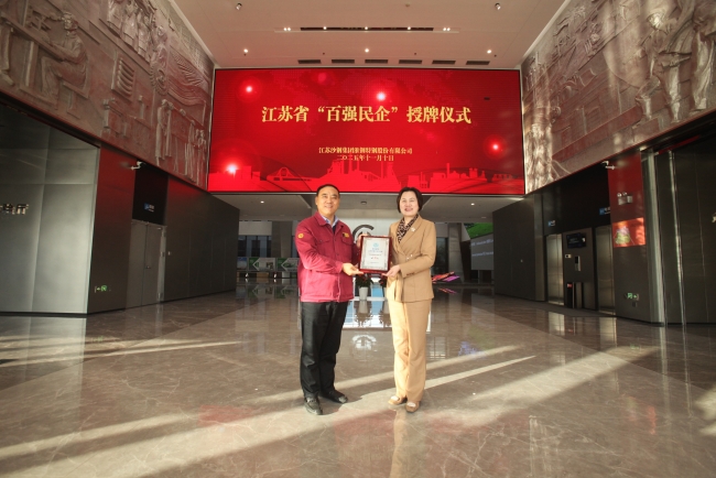 江苏利淮钢铁有限公司在今年江苏省工商联发布的2025江苏民营企业百强榜单上,入围江苏民营企业200强、制造业100强、研发投入100家企业,是我市唯一一家入围全部三项榜单的企业。叶蓓向公司董事长钱洪建颁授牌匾,鼓励企业充分发挥行业龙头带动作用,进一步做优主业、做大做强,在技术创新、产业升级、绿色低碳等方面不断提升标杆、实现突破,持续增强核心竞争力,为淮安经济社会高质量发展再立新功!